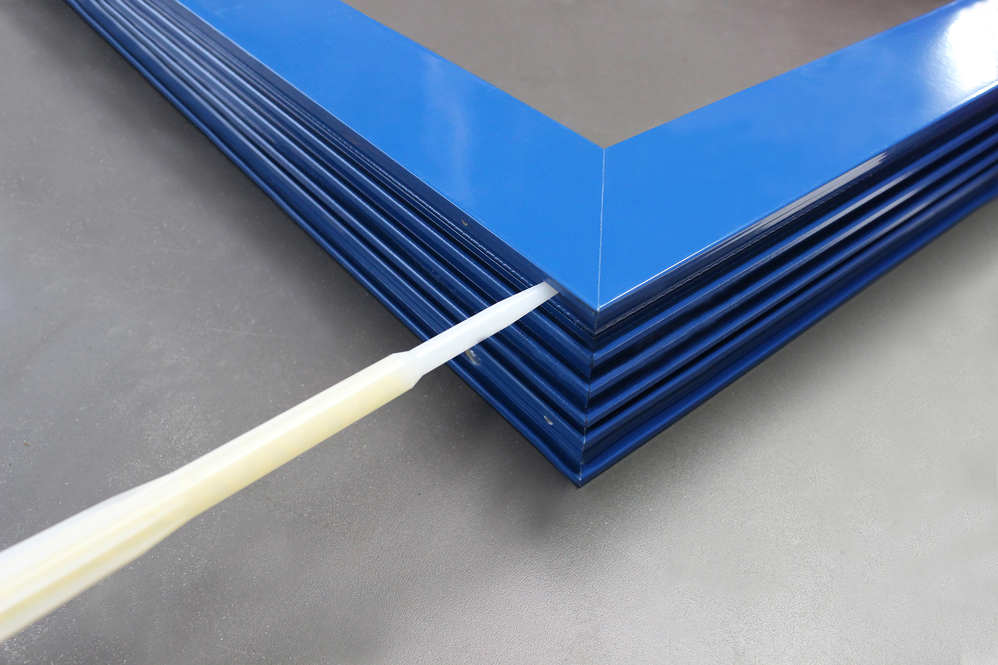 - Bonding of glazing bars in the glazing bar slot for the production of „burglar-resistant window- and door elements (RC 2, RC 3)“ in the field of plastic window construction
